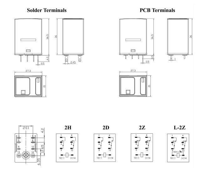 Structure de contact: 2Z signifie 'Double-pole à double pole ' (DPDT), fournissant des fonctions de commutation de circuit flexibles pour répondre aux exigences de contrôle complexes.