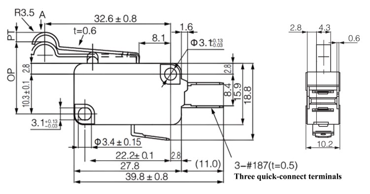 L'actionneur d'un micro-interrupteur peut avoir différentes formes et longueurs pour répondre à diverses exigences d'application.Il peut s'agir d'une boule, d'une tige plate ou d'une tige saillante.En fonction de la forme et de la position de l'actionneur, les micro-interrupteurs peuvent réaliser différentes méthodes de déclenchement et caractéristiques d'action.