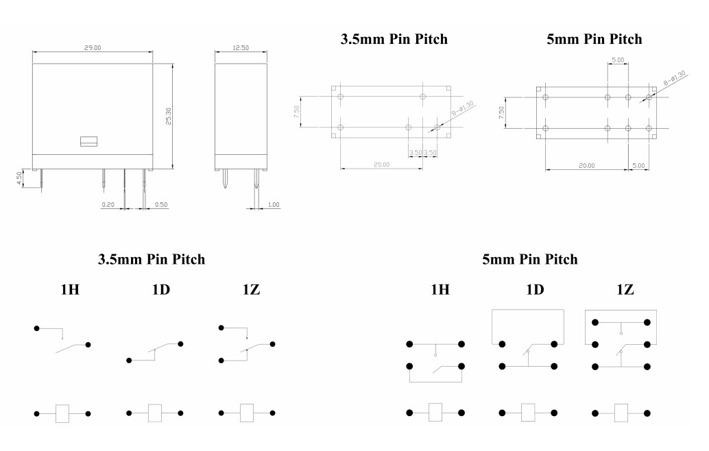 Fonction de contact | Formulaire | 1Z (SPDT), 1H (SPST-No), 1d (SPST-NC) | 2Z (dpdt), 2h (dpst-no), 2d (dpst-nc) | ||||