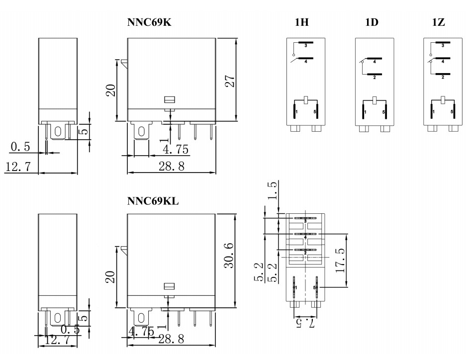 Fonction de contact | Formulaire | 1Z (SPDT); 1H (SPST-NO); 1d (SPST-NC) | 2Z (dpdt); 2h (dpst-no); 2d (dpst-nc) | ||||