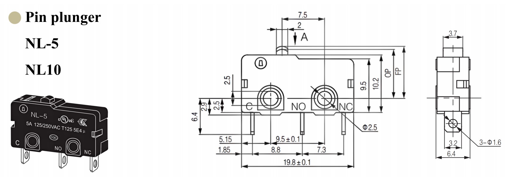 Malgré ses caractéristiques robustes, le micro-interrupteur NL-5 conserve une taille compacte.Cette conception compacte permet une intégration facile dans divers appareils et systèmes électroniques avec un espace limité.Il est largement utilisé dans l’électronique grand public, les systèmes automobiles, les appareils électroménagers, etc.